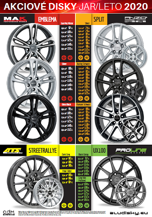 Od 1. februára 2012 sme pre Vás pripravili novú akciovú ponuku diskov z ľahkých zliatin MAK, PLW , OXIGIN, CARMANI a HRS. Pevne veríme , že Vás naša ponuka osloví a nájdete v nej atraktív...