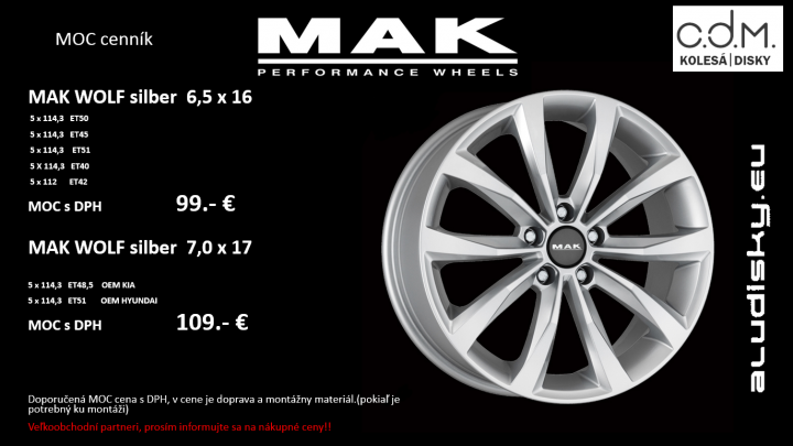 Pre zimnú sezónu 2009 pripravila spoločnosť MAK modely FUOCO 5 a FUOCO 6 v novej povrchovej úprave HYPER SILVER. Tieto disky sú určené najmä pre vozidlá kategórie SUV a 4x4. Disky sú do...